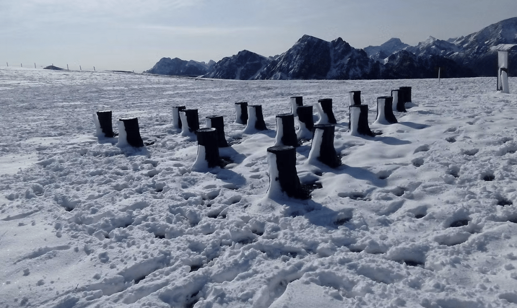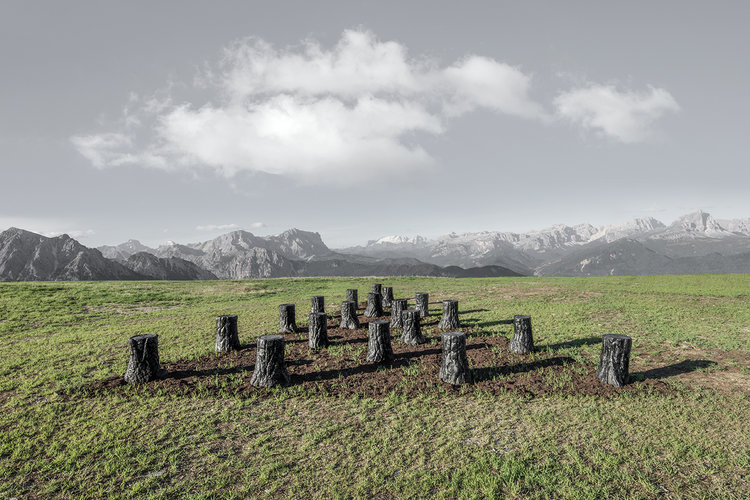 Sul Plan de Corones, a una certa altezza dove l’aria diventa più sottile e i pensieri rallentano, ci sono diciannove tronchi neri. Non sono alberi veri, anche se a prima vista potrebbero sembrarlo. Sono ceppi in vetroresina, tagliati con una precisione troppo pulita per appartenere alla natura. Stanno lì, disposti a triangolo, come se qualcuno avesse provato a dare una forma razionale a qualcosa che per sua natura non lo è mai. Guardandoli si ha la sensazione che la foresta sia passata di lì e poi se ne sia andata, lasciando solo questi resti silenziosi. Il nero assorbe la luce, la trattiene, e rende difficile capire se ciò che manca sia più importante di ciò che resta.