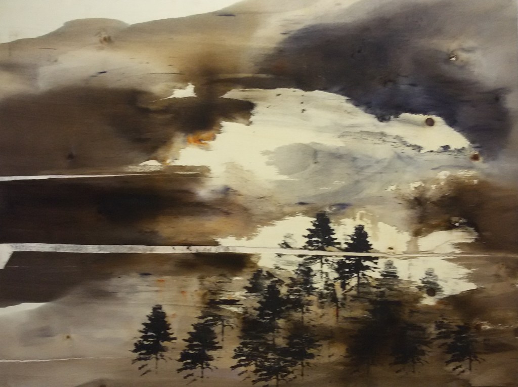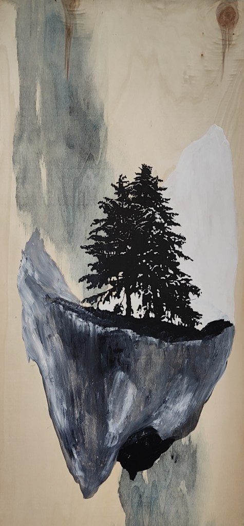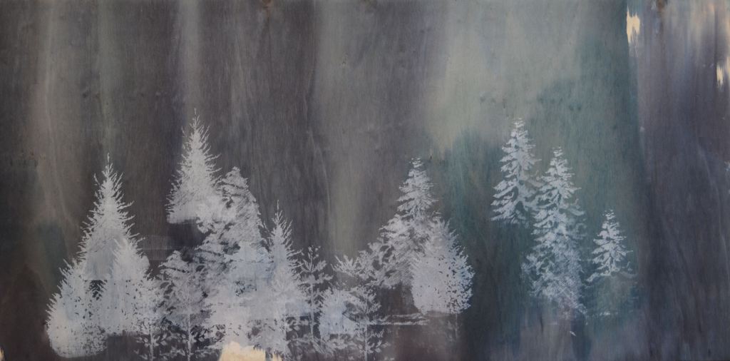 A un certo punto inizia a serigrafare sempre lo stesso albero, identico, ripetuto, un albero fatto in serie, omologato, come accade oggi alle persone. È un gesto elementare e quasi ossessivo, ma proprio per questo capace di parlare di una solitudine collettiva: della possibilità di essere tutti uguali e, allo stesso tempo, irrimediabilmente soli. Infatti, sebbene i suoi paesaggi nascano dalle Dolomiti e dalle Alpi, finiscono un po’ per assomigliare ai luoghi orientali da cui è tanto affascinata. Non per imitazione, ma per una ricerca dell’essenziale, del non detto. Nei suoi lavori si percepisce sempre un confine incerto, metà memoria d’infanzia, metà immaginazione. Molte cose le ricorda, altre le inventa. Poi arrivano i materiali: il legno, i mordenti, le polveri, oggetti vecchi che sembrano chiedere di essere ascoltati. Non è un processo completamente razionale: spesso è la materia a parlare per prima.